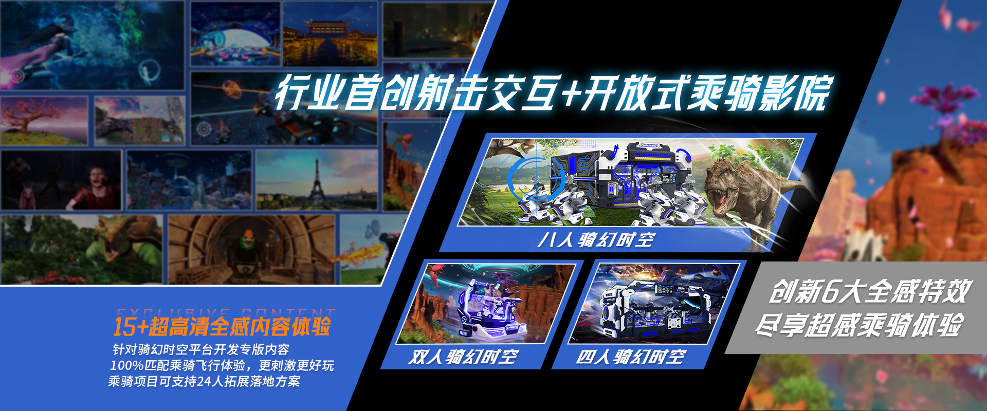公司現已擁有知名“穿越時空(VART)”VR品牌完整產品線,主推VR元宇宙主題樂園,XR研學基地、LBE大空間定制、5D/7D/軌道/球幕影院/乘騎等定制項目方案。
